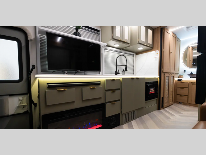 Each is built with an automatic 9G-Tronic transmission, and includes lane assist, attention assist, and adaptive cruise control for safety on the highways and in town. Some of the exterior features include upgraded MorRyde cargo doors, an armless awning, a rear fiberglass cap, and integrated fiberglass running boards. Inside you'll enjoy solid surface countertops with lit edge banding, an upgraded kitchen sink and faucet, a soft touch ceiling, and more comforts!