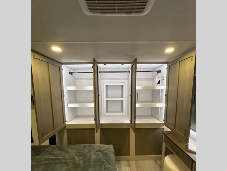 - Full-Profile Front Cap with HUGE Functional Wardrobe (378FL Uses Panoramic Windshield in-place-of Wardrobe)