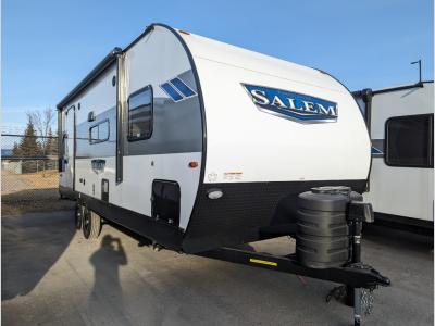 Discover the Forest River RV Salem Travel Trailers at Carefree RV in Alberta, a versatile and well-rounded line of RVs designed for a variety of camping experiences. These travel trailers feature durable fiberglass exteriors, aluminum frames, and well-insulated walls, making them suitable for diverse climates. Inside, you'll find modern amenities like fully equipped kitchens, bathrooms, and entertainment systems. Ideal for family camping with bunkhouse layouts, weekend getaways, and outdoor enthusiasts, the Salem series offers spacious interiors and user-friendly setups. Perfect for families, adventurous travelers, and new RV owners, these trailers provide comfort and reliability on the road.
