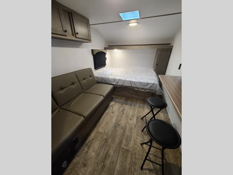 Sleeps 7 Length 21 ft 10 in Ext Width 8 ft Ext Height 10 ft 3 in Int Height 6 ft 6 in Hitch Weight 340 lbs Dry Weight 2685 lbs Cargo Capacity 4655 lbs Fresh Water Capacity 26 gals Grey Water Capacity 34 gals Black Water Capacity 30 gals Furnace BTU 16000 btu Number Of Bunks 2 Refrigerator Type 12V Refrigerator Size 4.3 cu ft Cooktop Burners 3 Number of Awnings 1 LP Tank Capacity 20 lbs Water Heater Type DSI Gas AC BTU 5000 btu Awning Info Power Axle Count 1 Number of LP Tanks 1 Shower Type Standard Similar Floorplans