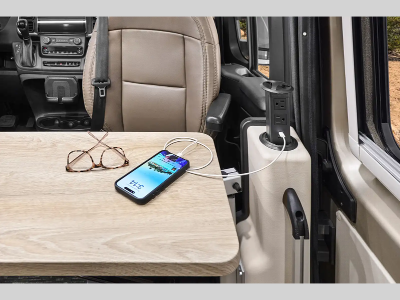 - Winnebago Power MAX: (1) 8.4kWh Lithionics® lithium-ion batteries w/dual alternator charging capability, Bluetooth® control and pack heating system, Winnebago® x EcoFlow® Power Hub Pro (5-in-1 power management controller [3,600-watt inverter, inverter charger, DC-DC converter, MPPT solar charger and alternator charger] and touchscreen interface, and 245-watts of solar (59KL)