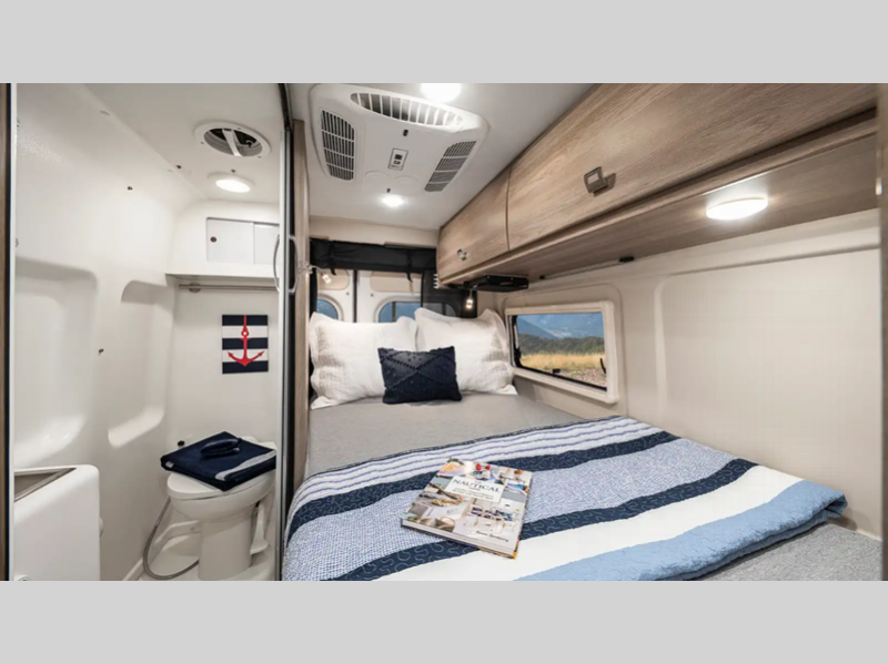 Sleeps 2 Length 21 ft Ext Width 6 ft 9 in Ext Height 9 ft 4 in Int Height 6 ft 3 in Interior Color Bleu with Walnut, Bleu with Walnut and White, Bleu with Weathered Teak Exterior Color Full Body Paint, Deluxe Full Body Paint Choices; Bright White, Bright Silver, Ceramic Gray, Sandstone Hitch Weight 3500 lbs GVWR 9350 lbs Fresh Water Capacity 18 gals Grey Water Capacity 12 gals Black Water Capacity 12 gals Fuel Type Gasoline Engine 3.6L V6 Chassis Ram ProMaster Horsepower 280 hp Fuel Capacity 24 gals Wheelbase 159 in Available Beds Two Twin Refrigerator Type Single Door Compressor Driven Refrigerator/Freezer 12V Refrigerator Size 4.3 cu ft Convection Cooking Yes Cooktop Burners 1 Shower Size 25" x 43" Number of Awnings 1 Axle Weight Front 4629 lbs Axle Weight Rear 5291 lbs LP Tank Capacity 25 lbs Water Heater Capacity 2.6 gal Water Heater Type Truma Combi Eco Plus TV Info Coach 24" HDTV Awning Info 13' Rack Mounted Power with LED Lighting and Bluetooth Control Gross Combined Weight 12000 lbs Shower Type Wet/Bath Shower Electrical Service 30 amp Similar Floorplans