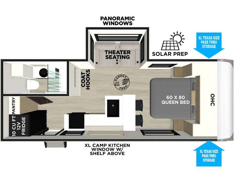 Extra Large Pass Thru Storage w/ Slam Latch Baggage Doors